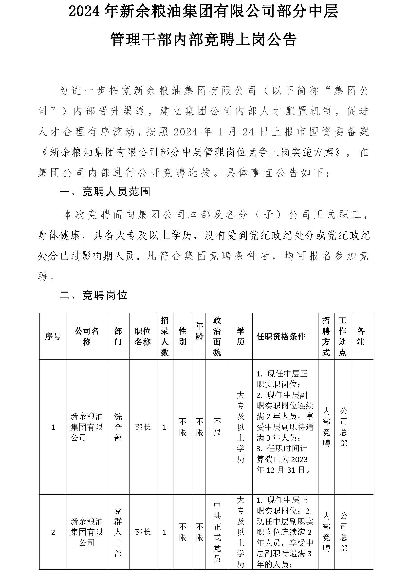 內部競聘上崗公告