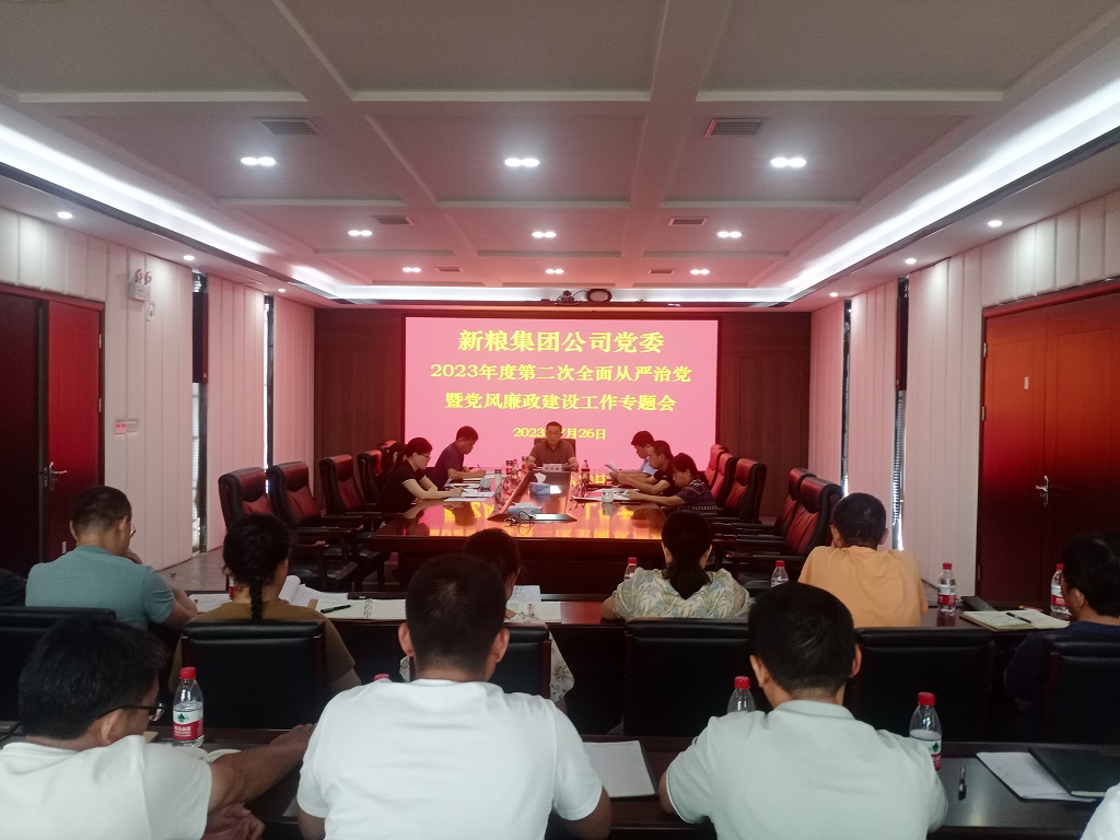 2023年7月26日,新糧集團公司黨委召開2023年度第二次全面從嚴治黨暨黨風廉政建設工作專題會,公司黨委書記、董事長胡林敏主持會議,市露林公司紀委書記黃勇蒞臨指導。公司班子成員參加會議,公司各單位、各(總)黨支部、各部門負責人列席會議。